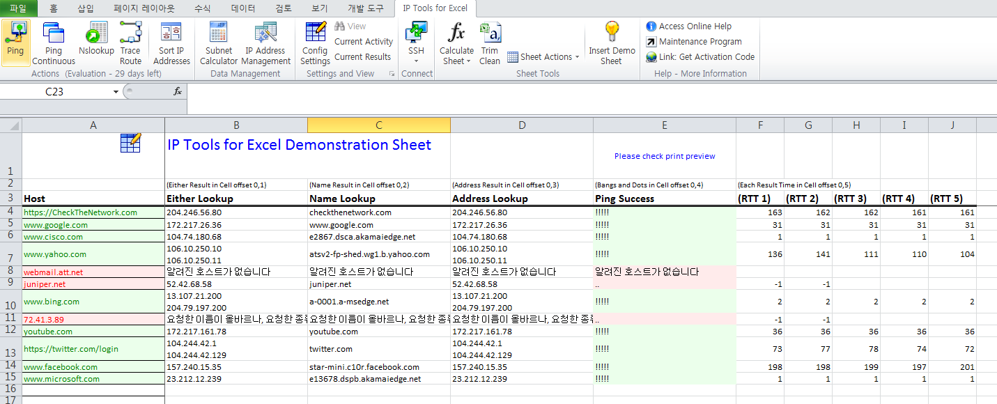 그래서 엑셀에서 네트워크 관련 명령어를 사용할 수 있는 add on 이 없을까 하다가 구글링하니 역시나 있구나.